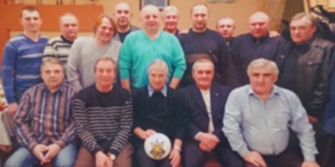 ФОТО з АРХІВУ. 2014 р. Ветерани сумського футболу різних років. У верхньому ряду Юрій ПАНЧЕНКО (6-й ліворуч) і Костянтин ШЕЛЕХОВ (праворуч).