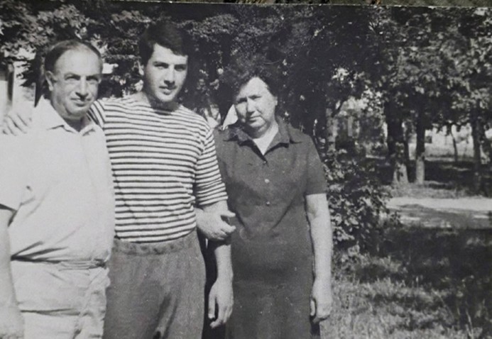 ФОТО з АРХІВУ Альберта МОЛГАМОВА. 1987 р. Альберта проводжають в армію його батьки – Ліва Якович та Ірина Петрівна.