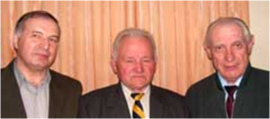 2010.р. Святкуання 50-річчя дебюту сумської команди майстрів у класі «Б» чемпоінтау СРСР. На знімку (зліва направо): Микола ВОРОНЬКО, куратор команди Григорій КУЗЬМЕНКО і головний тренер Олександр СЕРБІН.