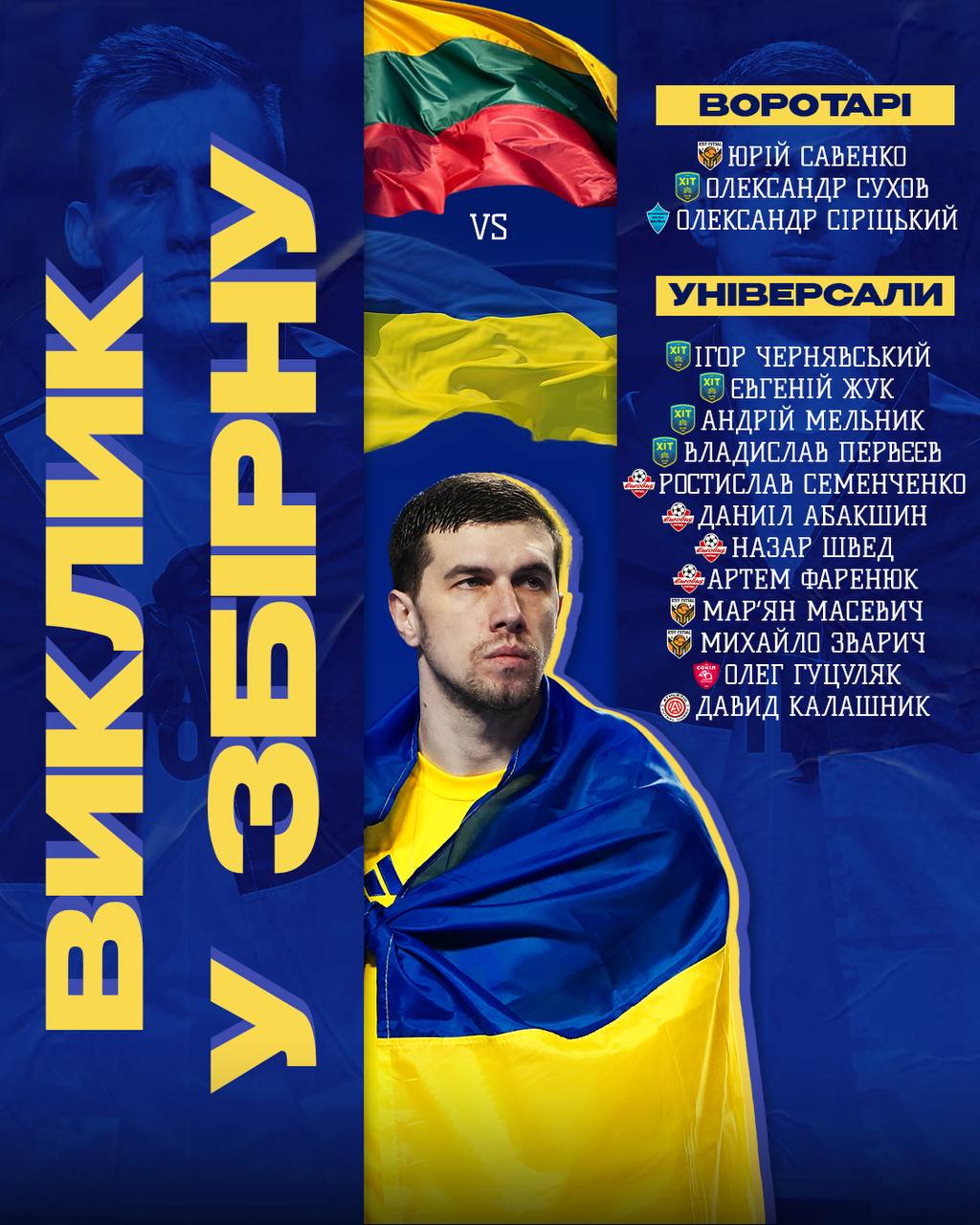 Олександр Косенко викликав до збірної України 15 гравців на навчально-тренувальний збір та два товариські матчі з Литвою.
